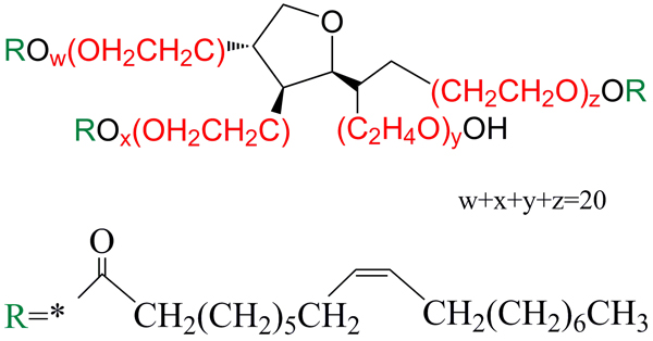 該產(chǎn)品由山梨醇酐三油酸酯與環(huán)氧乙烷縮合而成,具有以下特性:
